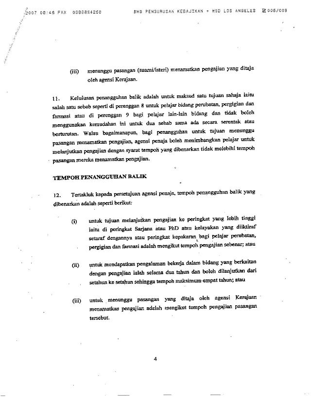 Here’s an interesting question: When the government sponsor a student to go study in a foreign nation, for example, “scholars” from Malaysia or Singapore being sponsored by JPA and PSC respectively, should they be allowed to stay on after their studies to work for, say, a period of 1 to 5 years, before returning to their homeland to contribute back to the taxpayers / corporation who have initially sponsored their education? Recently there was a circular amongst the Malaysian students studying in US (reproduced here – don’t quote me!! I’m no gahmen, but link can :)) about a standardization of this “grace period” to reduce confusion. If you can read Malay, here’s the fax (7 pages, open in new window):